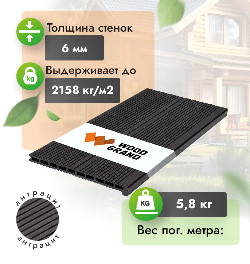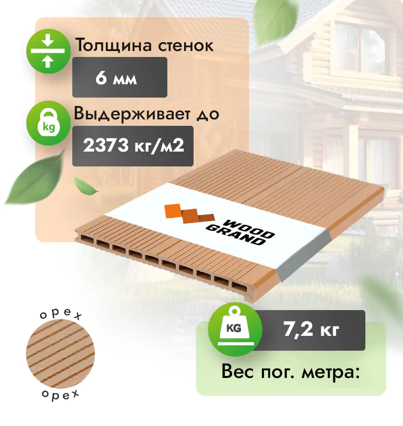 • Безупречное качество изделий, террасная ступень из ДПК соответствует ГОСТу Р 59555-2021.